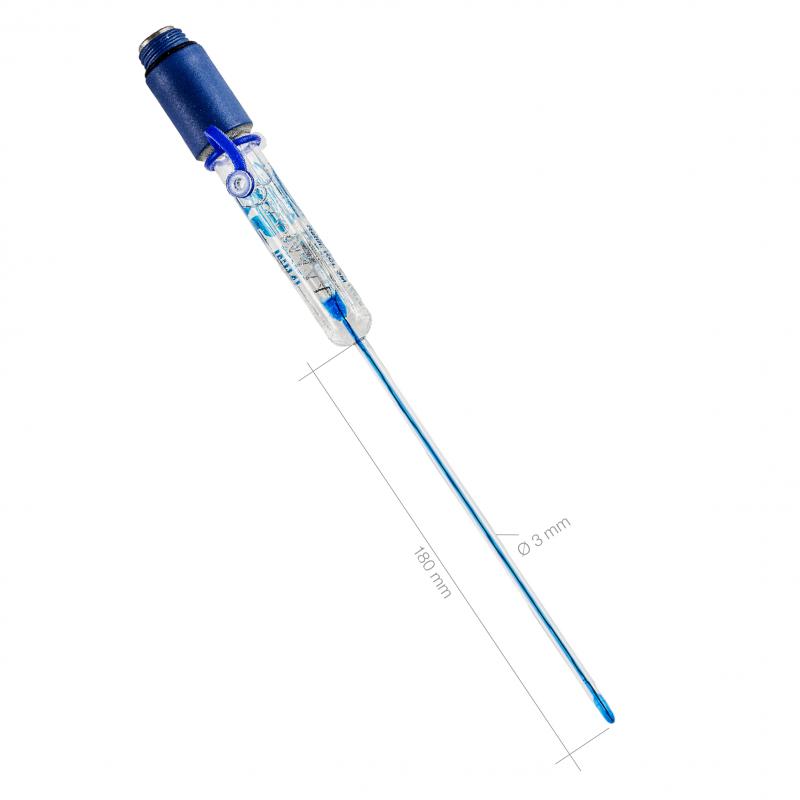 Electrodo de pH XS MICRO SPECIAL, diámetro Ø 3 mm, L= 180 mm, rango pH 0...14, 0 a 100 ºC, cuerpo vidrio, electrolito KCl 3M. Sin cable, cabezal S7. Para mediciones en tubos RMN