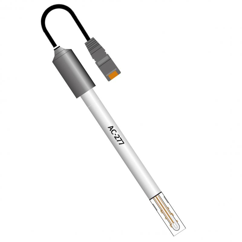 Célula de conductividad para muestras de baja conductividad. 1 μS/cm…10 mS/cm, -30…80ºC, cuerpo de vidrio y sensor de platino, con 1m de cable. Con sensor de temperatura integrado Pt1000