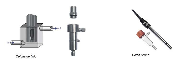 La medición se puede realizar en línea (con celda de flujo) o con botella para muestra.